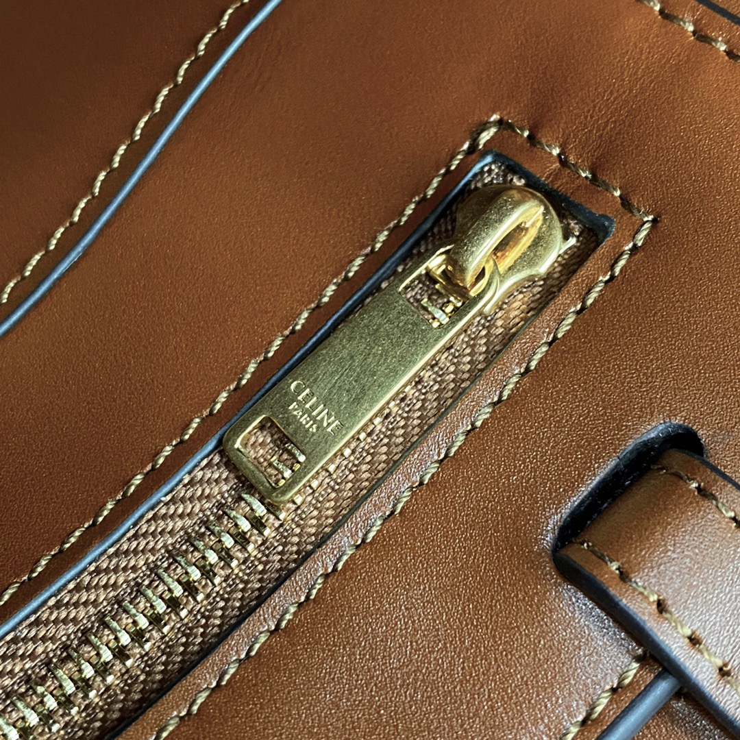【P1280】Celine FOLCO CUIR 思琳2022春夏铆钉装饰牛皮马鞍包斜挎包 棕色