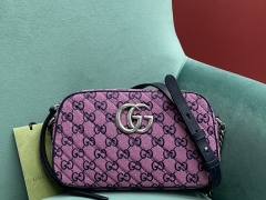 【P980】古奇包包官网 Gucci双G字母交织帆布Marmont系列相机包24CM