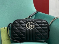 【P1050】Gucci Marmont系列 古驰447632黑色竖条和斜条绗缝相机包斜挎包