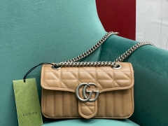 【P1250】Gucci Marmont系列 古驰446744新格绗缝链条单肩包 杏色
