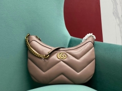 【P1280】古奇女包批发 Gucci2023新款Marmont系列半月绗缝包链条单肩包 裸色