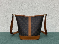 【P1050】Celine TRIOMPHE FOLCO 思琳191442棕色刺绣斜挎水桶包