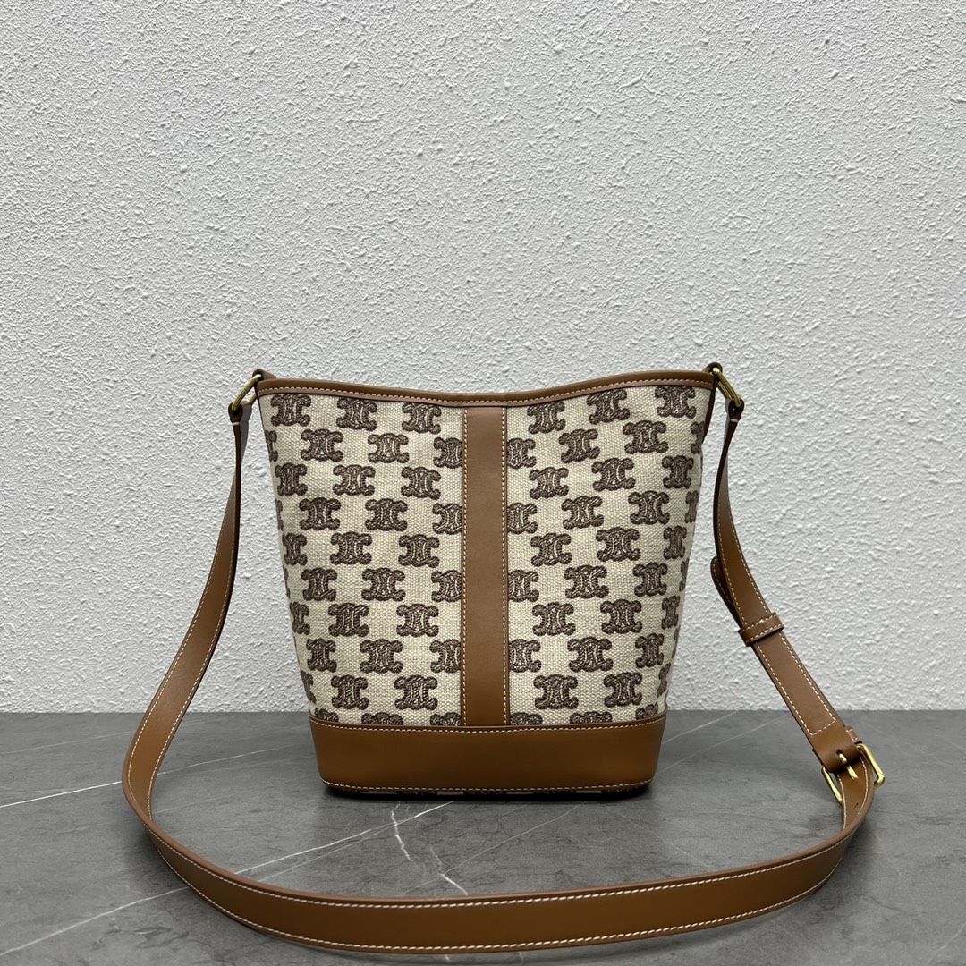 【P980】Celine TRIOMPHE FOLCO 思琳191442咖啡经典老花斜挎水桶包小号