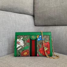 古驰新品秋冬花卉图案系列 Gucci复古503877链条单肩包26CM 绿色