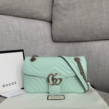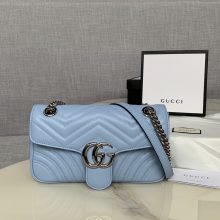 古奇经典款女包 Gucci新色马卡龙蓝原厂皮Marmont链条单肩女包26CM