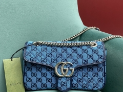 【P1200】一件代发 Gucci古奇443497蓝色春夏新款女包Marmont单肩包26CM