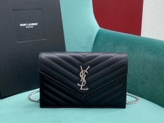 【P1020】YSL包包批发 圣罗兰393953黑色银扣小号信封包链条手包19CM