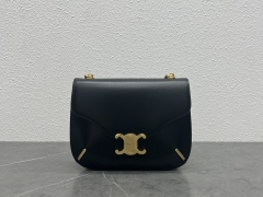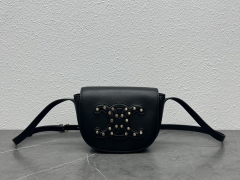 【P1280】思琳包包货源 Celine2022春夏新款黑色牛皮斜挎FOLCO CUIR马鞍包