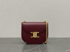 【P1770】一件代发 Celine思琳110973猪肝红牛皮凯旋门马鞍包链条包