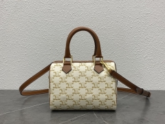【P1050】思琳包包批发 Celine TRIOMPHE米白棕印花手提枕头包波士顿包