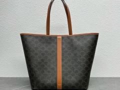 【P1020】思琳包包批发 Celine TRIOMPHE 棕色老花料单肩托特包购物袋