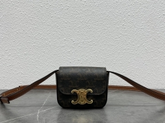 【P900】思琳包包批发 Celine Folco复古棕色老花料凯旋门马鞍包斜挎包18CM