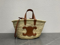 【P1130】思琳包包批发 Celine休闲度假风编织菜篮子包手提包 棕色Logo