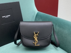 【P1170】圣罗兰新款女包 YSL爆款Kaia马鞍包619740黑色牛皮斜挎包18CM