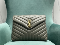 【P1500】圣罗兰包包货源 YSL LOULOU系列Y字斜纹链条单肩斜挎包大号 459749灰色金扣