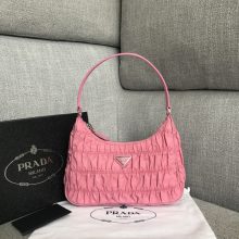 普拉达包包价格 Prada最新hobo褶皱包91205粉色进口尼龙布单肩女包22CM