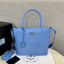 Prada包包价格 普拉达新款91211蓝色进口尼龙布单肩手提女包25CM