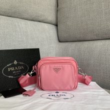 普拉达包包价格 Prada新款原厂尼龙布方形小包单肩斜挎包16.5CM 91222粉色