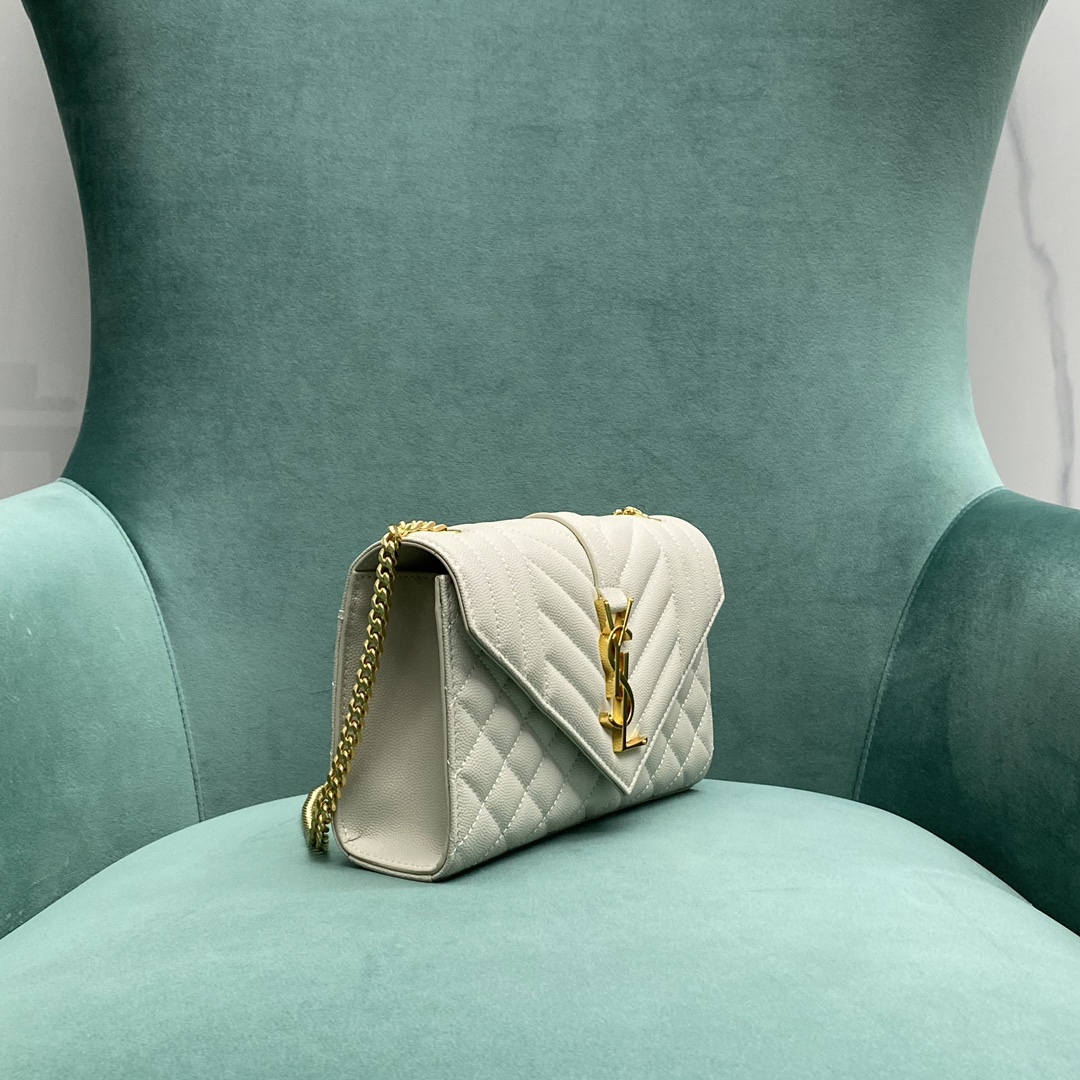【P1170】圣罗兰经典女包 YSL ENVELOPE白色小号绗缝信封包链条包600195