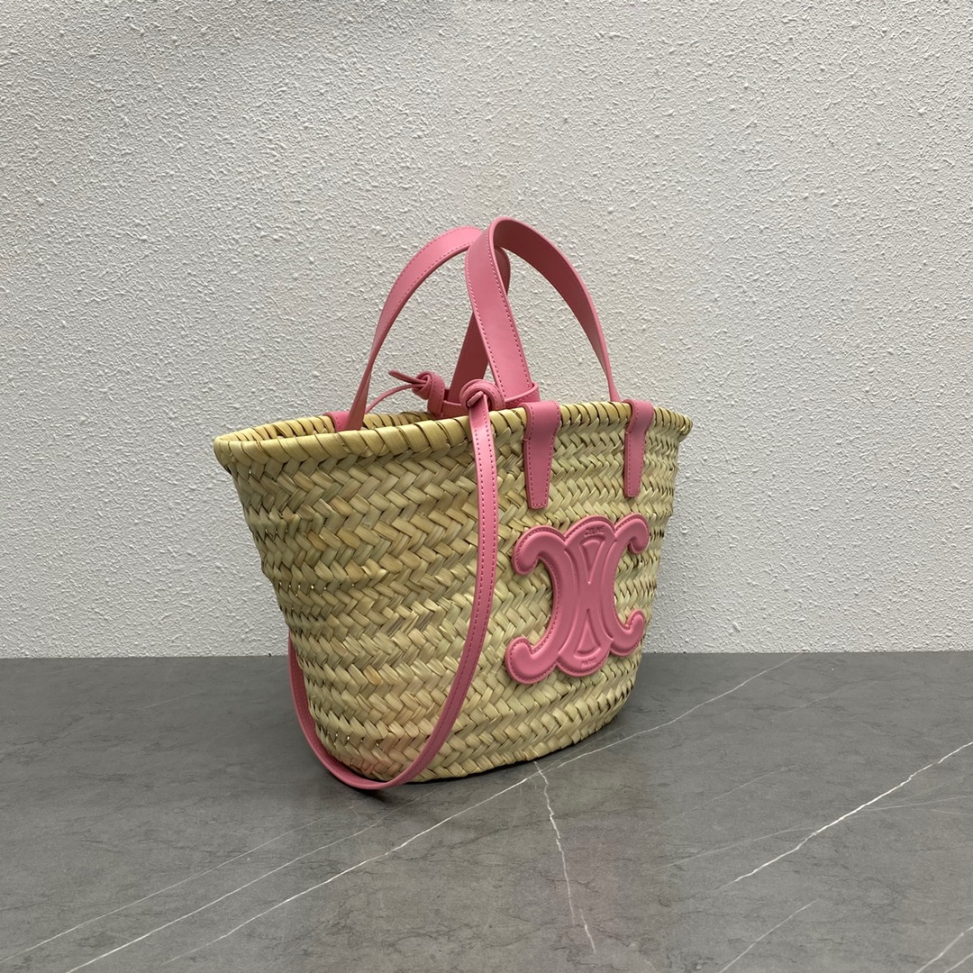 【P1130】Celine2022新款女包 赛琳194002粉色Logo编织手提包菜篮子包