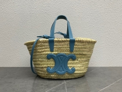 【P1130】赛琳包包货源 Celine新款度假风编织拼接蓝色皮菜篮子包 194002