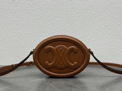 【P1130】赛琳包包货源 Celine 2022新款198604棕色复古斜挎月饼包大号