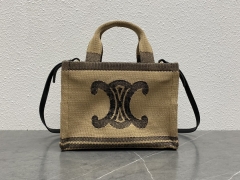 【P1170】赛琳包包货源 Celine199162黑棕麻布托特包手提斜挎包26CM