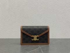 【P1170】赛琳包包货源 Celine新款棕色老花料信封包链条斜挎包手拿包100788