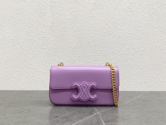 【P1430】赛琳包包批发 Celine2022新款199243紫色凯旋门皮扣链条腋下包