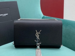 【P1130】圣罗兰经典款包包 YSL354119球纹皮链条流苏手包 黑色银扣