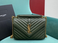 【P1350】YSL包包官网 圣罗兰487213绿色V纹衔缝MONOGRAM邮差包手提女包