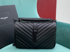 【P1350】YSL MONOGRAM邮差包 圣罗兰487213黑色V纹衔缝手提单肩女包 黑扣