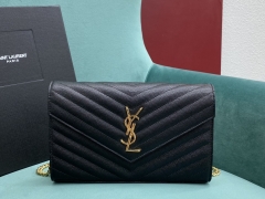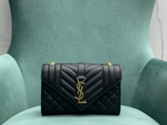 【P1170】圣罗兰包包官网 YSL ENVELOPE小号绗缝链条信封包 黑色金扣