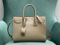 【P1950】YSL女包批发 圣罗兰421863杏色鳄鱼纹牛皮风琴包中号26CM