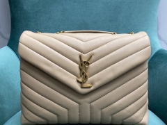 【P1500】YSL女包批发 圣罗兰459749裸色金扣LOULOU系列大号斜挎包31CM