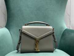 【P1580】YSL女包批发 圣罗兰623930灰色平纹box皮CASSANDRA手提斜挎包