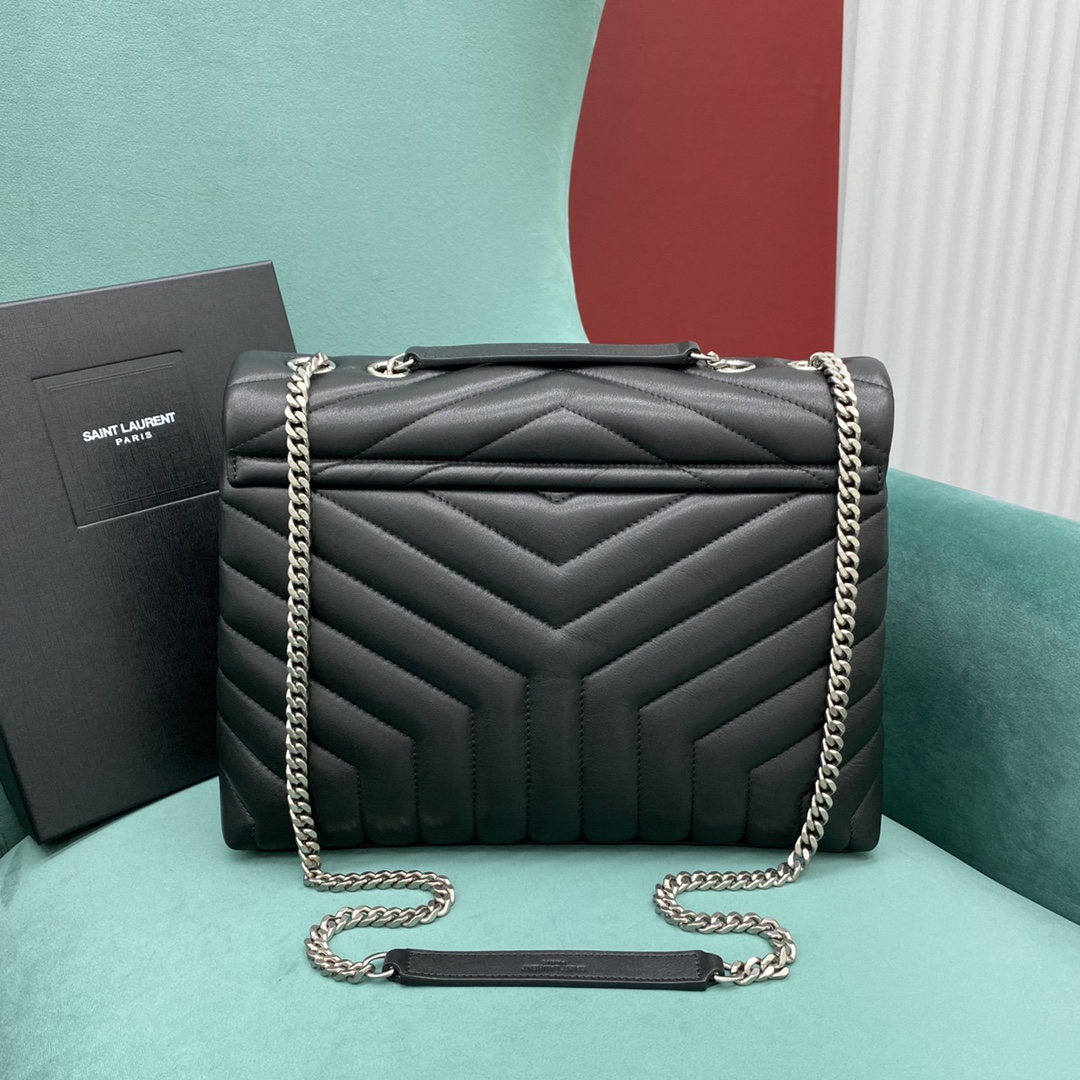 【P1500】圣罗兰包包批发 YSL 459749黑色银扣Y字纹LOULOU大号真皮斜挎女包