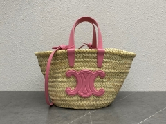 【P1130】Celine2022新款女包 赛琳194002粉色Logo编织手提包菜篮子包