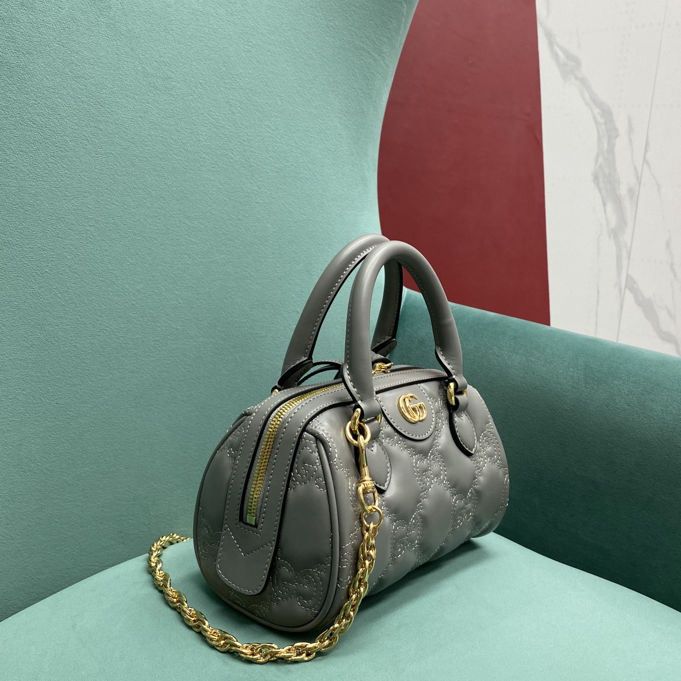 【P1200】古奇包包货源 Gucci 2022新款702251灰色压纹波士顿包链条手提包