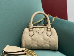 【P1200】Gucci包包官网 古驰702251米杏色压纹手提波士顿包链条斜挎包