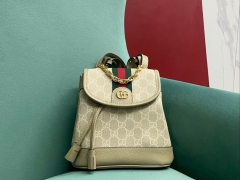 【P1280】Gucci Ophidia系列 古奇Supreme帆布拼皮双肩背包 燕麦色