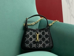 【P1290】Gucci包包官网 古驰2024新款黑色小钻蜥蜴纹Jackie 1961系列迷你腋下包