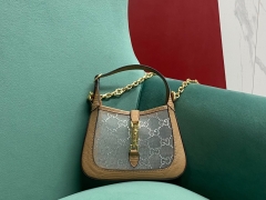 【P1400】Gucci包包官网 古奇棕色水钻GG帆布Jackie腋下包链条包