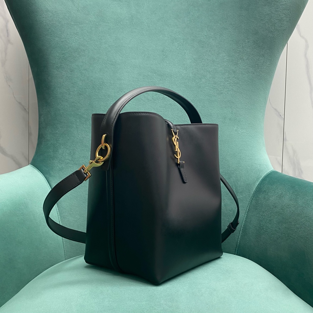 【P1770】YSL女包货源 圣罗兰742828黑色光面牛皮Le37水桶包斜挎手提包