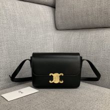 思琳经典女包 Celine Box早春新色黑色牛皮凯旋门扣单肩斜挎包包16.5CM
