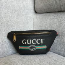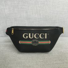 古驰新款包包 Gucci黑色牛皮织带男女通用腰包胸包28CM