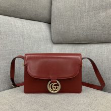 古驰新款包包推荐 Gucci独特造型双G复古斜挎女包24CM 红色
