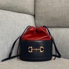 古驰新款包包 1955系列马衔扣蓝色拼红色圆桶包单肩女包25.5CM