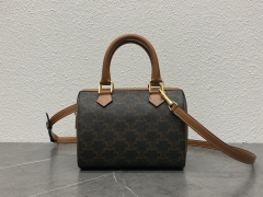 【P1050】Celine TRIOMPHE 思琳标志印花帆布小号波士顿包枕头包 黄褐棕