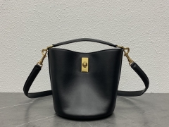 【P1280】思琳24早春新款 Celine TRIOMPHE 黑色光面牛皮水桶包薯条包
